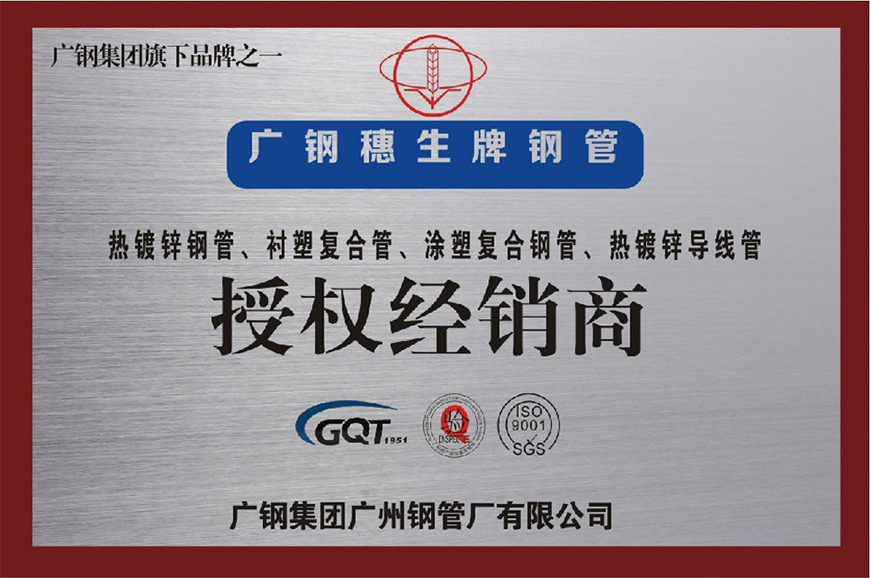 树行业标杆,创穗生品牌,先后通过了ISO9001:2015国际质量管理体系认证、ISO14001:2015环境管理体系认证及ISO45001:2018职业健康安全管理体系认证。穗生牌商标荣获广东省著名商标、广州省著名商标、钢管行业十大品牌,是广东省商标协会成员。穗生牌产品更是荣获工程建设推荐产品、广东省名优产品、广州市用户满意产品等荣誉。