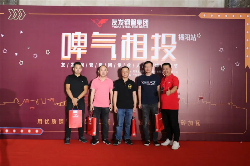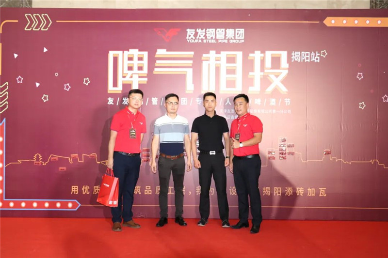 8月28日,友发钢管集团「啤气相投」啤酒节·揭阳站活动在美丽的揭阳迎宾馆隆重举行。作为此次活动的协办单位,千亿官方网页版登录入口集团全力做支持,期望能让我们到场的嘉宾们收获满满,玩的尽兴。友发公司销售团队领导、千亿官方网页版登录入口集团管理层领导及各子公司负责人代表全数出席,与来自揭阳及周边的钢管行业企业代表开怀畅饮,共叙友谊。