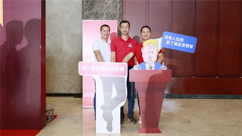 “规模大、规格全、质量优、实力强、技术牛、责任重、服务佳、梦想高”是友发的八个特点;省心、省钱、省时的一站式钢管管家服务是千亿官方网页版登录入口的承诺。我们为到场的嘉宾粘贴了“爱心”,表达了我们一定会做好服务的决心,让他们充分感受到伙伴们的用心与真诚。