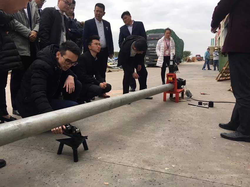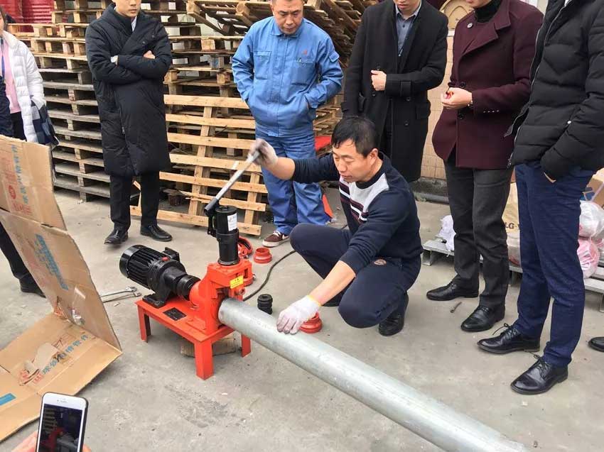 下午,则是现场实操,卡耐夫的两位老师为我们演示了钢管压槽的正确方法,并对会遇到的一些问题进行解说;同时现场还演示了钢管与沟槽管件的安装使用,最后,还为我们讲解了管件在工地上经常出现的问题以及解决方法。