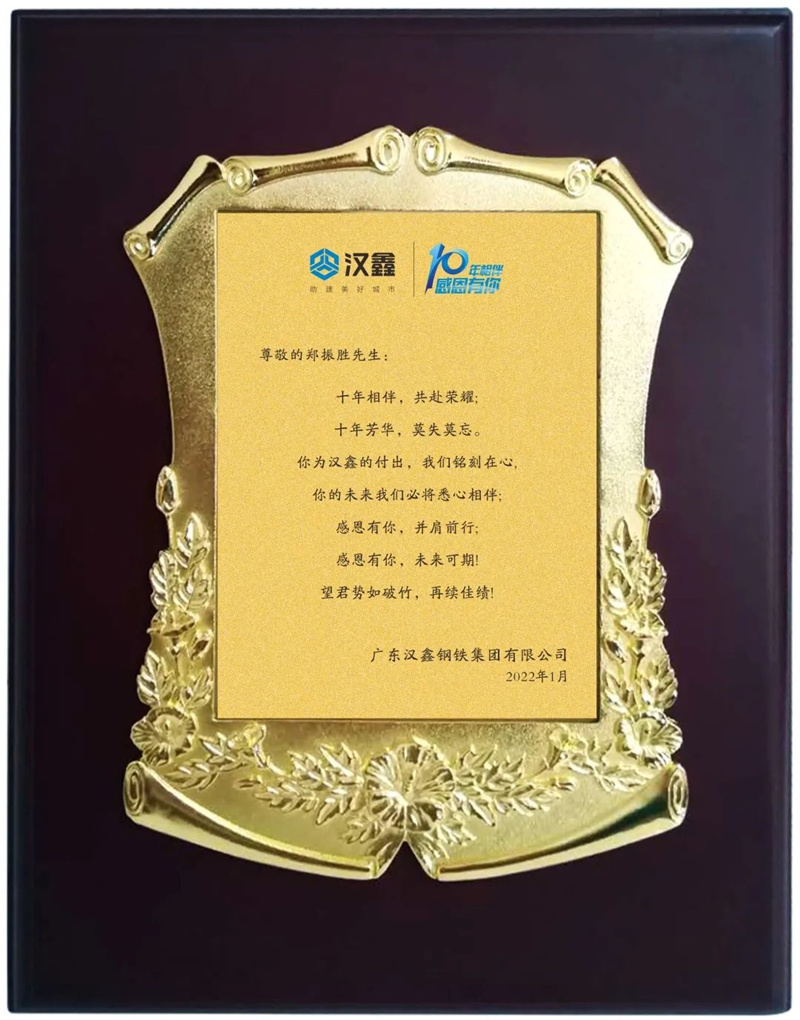 区域总经理林鸿文先生作为颁奖嘉宾,为郑总颁发十周年纪念奖牌与礼品。