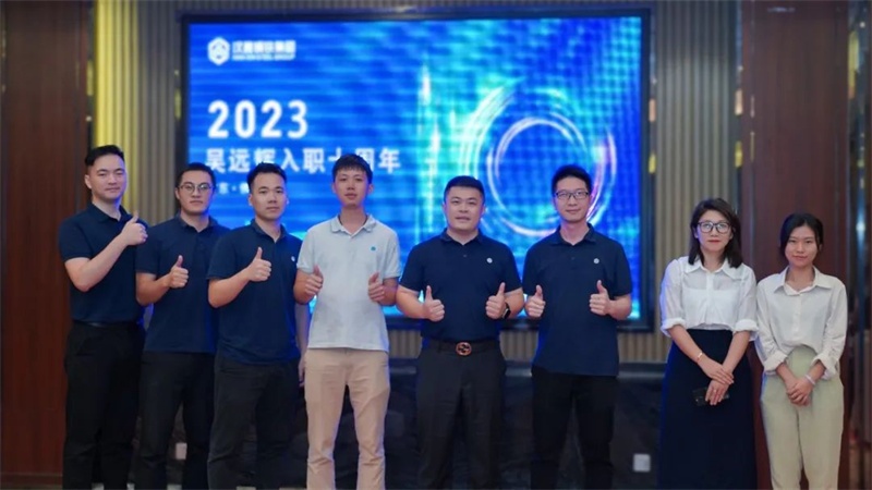 为庆祝吴远辉入职千亿官方网页版登录入口十周年,7月21日,集团为其举行入职十周年庆典,在总裁史诗鑫先生带领下,佛山区域全体员工、集团及各子公司代表、合作伙伴莅临现场,为吴远辉送上祝福。