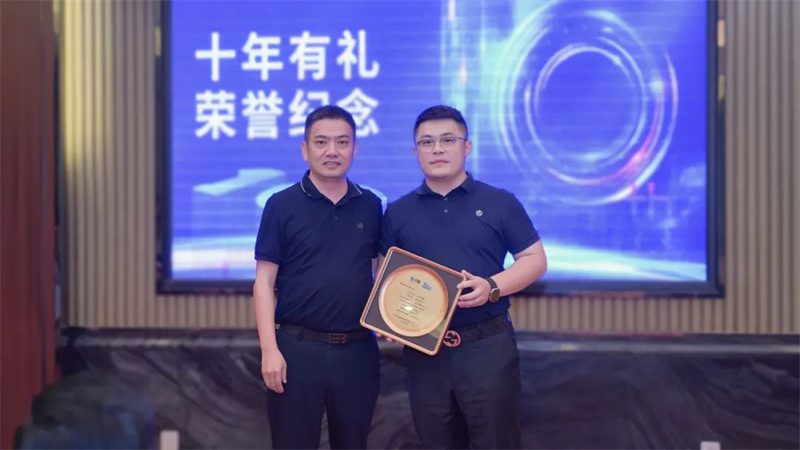 十年,无论对个人还是对企业来说,都具有里程碑式的纪念意义。副总裁张鸿鹏代表集团,为辉总颁发特别定制的十周年纪念奖牌及礼品,纪念他与千亿官方网页版登录入口十年笃定同行,感谢他这十年间为千亿官方网页版登录入口发展所做的贡献。