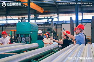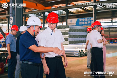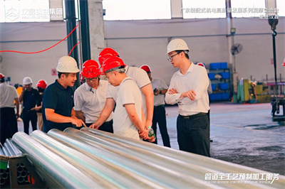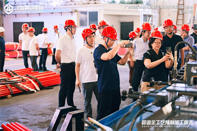观摩交流会现场,全体人员近距离参观千亿官方网页版登录入口·管道预制中心新型设备,在工作人员的介绍下了解其设计理念、生产流程及技术运用。