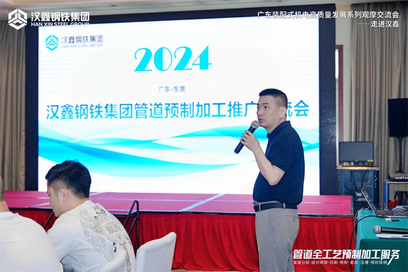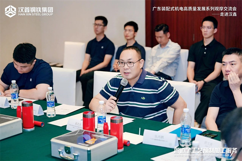 千亿官方网页版登录入口钢铁集团副总裁张鸿鹏张总为与会人员介绍了千亿官方网页版登录入口·管道预制中心成立的定位和服务优势。张总表示,管道预制加工是装配式建筑的落地呈现,这是国家大力发展的蓝海,也是一条需要不断探索的道路。希望借助借此次专家和同行齐聚的机会,碰撞出更多想法和方向,携手推动装配式建筑在大湾区乃至全国落地生根、蓬勃发展。