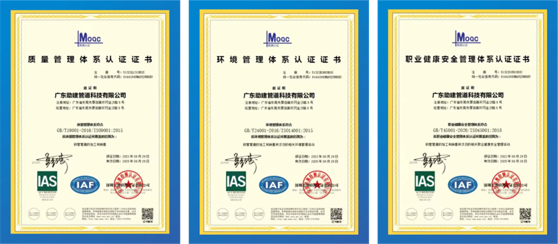 经过数年探索,千亿官方网页版登录入口已在管道预制板块积累了充分经验,参与众多大型项目建设,获得广泛认可,并荣获国家高新技术企业认证、13项实用新型专利、ISO质量管理体系认证、ISO环境管理体系认证、ISO职业健康安全管理体系认证等资质荣誉。
