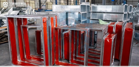 目前我司主要承接金属风管类产品定制,包含镀锌钢板风管、不锈钢风管、各类风管配件/部件等,其应用广泛且生产线工序成熟,加工方便便捷;通过大批量工业化生产,能有效保障风管产品质量及供货周期。风管预制产品多是模块化拼接,货到即装,能极大地提高施工效率。