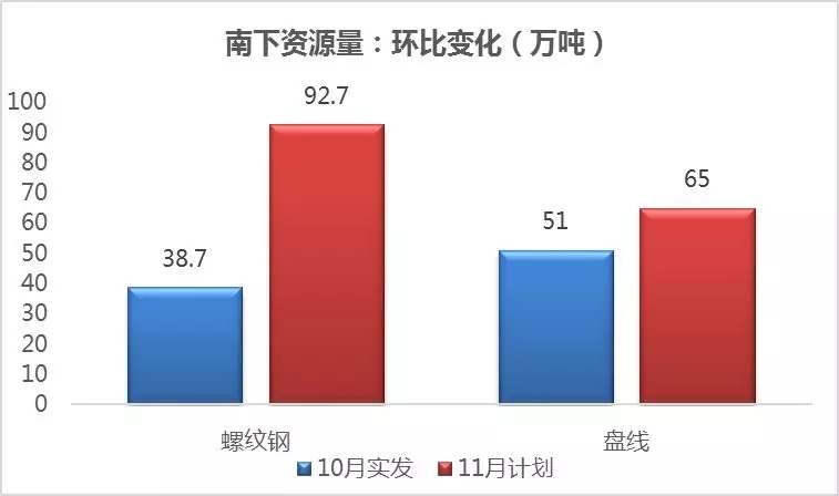 随着生态环保监察力度不断加强,秋冬季钢铁产业限产执行在即,后期整体供给或有回落趋势,从全国库存数据来看,库存总量也在持续下降中。随着北方冬季的来临,市场需求量骤减,无论是钢企还是经销商都将目标不约而同转向南方市场,南方市场库存将得到补充;据统计,11月份东北区域16家建材钢企线螺南下计划总量达157.7万吨。