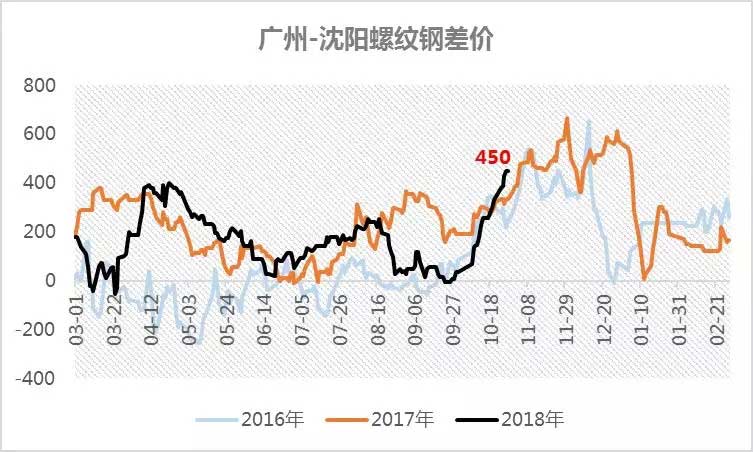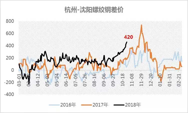 从南北价差走势图可以看出,自9月下旬以来南北价差呈现日益扩大之势;