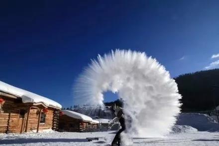 ”泼水成冰“ 动作一定要迅速,一墨迹水在杯里就成冰了。